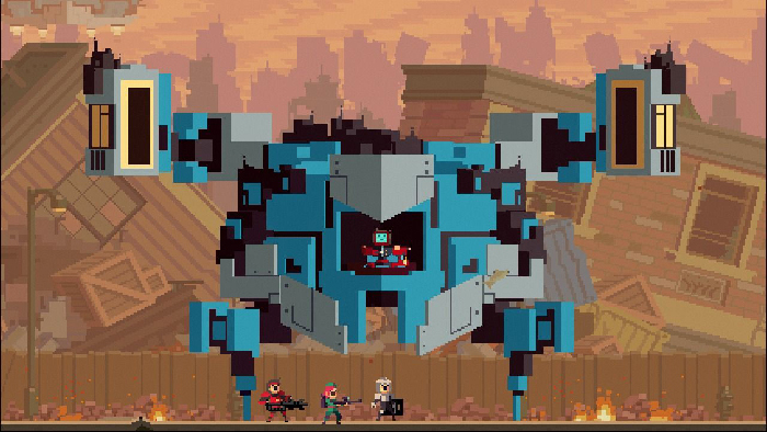 Whilst inherently retro in its look, Super Time Force is predominantly made up of newer ideas. An 8-bit influence is certainly apparent, from the Mega Man style level select screen to a sub-boss that throws barrels at the player. But the most obvious comparison to the game’s graphical style would be the Sword and Sworcery EP, which Capybara Games co-developed alongside Superbrothers.